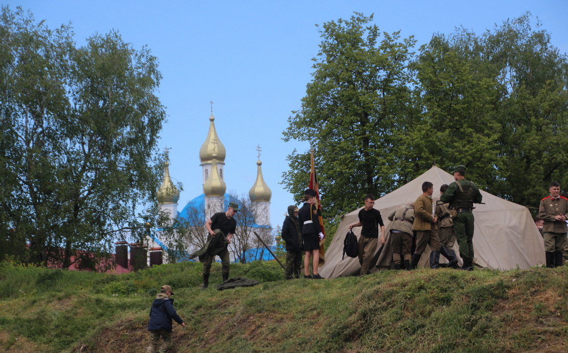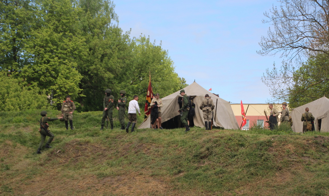 Имитация боевых действий, фронтового быта сопровождалась живым участием актёров в форме Красной армии. Дети с интересом рассматривали технику, взрослые делали фото.