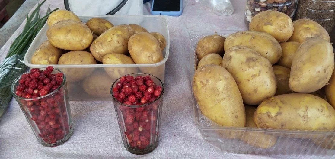 Овощной ассортимент также широкий. Цены на картофель — от 2 до 5 рублей, все зависит от размера клубней.