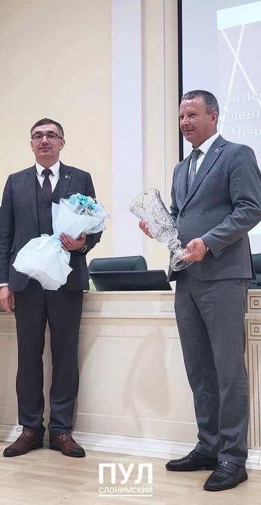 Сегодня в Слонимском райисполкоме прошло официальное мероприятие по случаю завершения работы заместителя председателя Юрия Алексеевича Чечета. Он покидает район, чтобы занять пост заместителя главы администрации по экономике Центрального района города Минска.