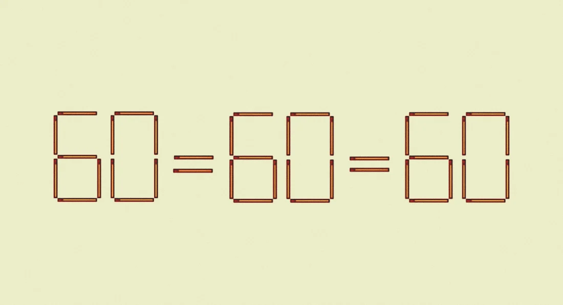 Решение простое, но требует творческого подхода: нужно перенесите одну спичку с восьмерки на знак «минус», получив верное равенство: 60=60=60.