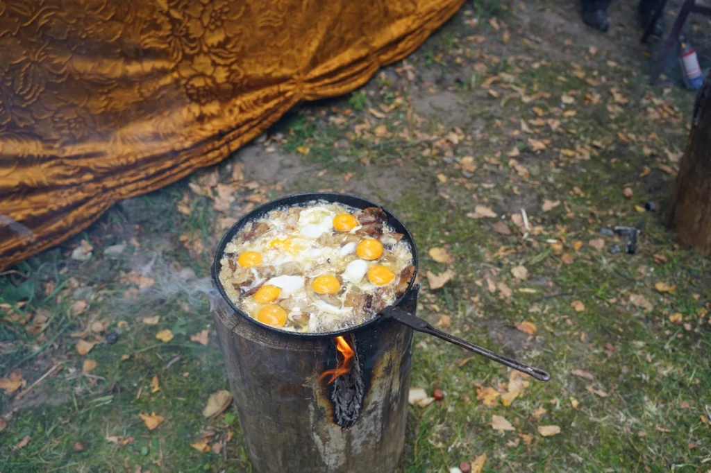 Особой популярностью пользовались блюда прямо с костра: картошка с колбасками, шкварками и луком, а также яичница с мясом и овощами. Атмосферу праздника дополняли народные песни, концертные выступления и конкурсы для детей и взрослых.