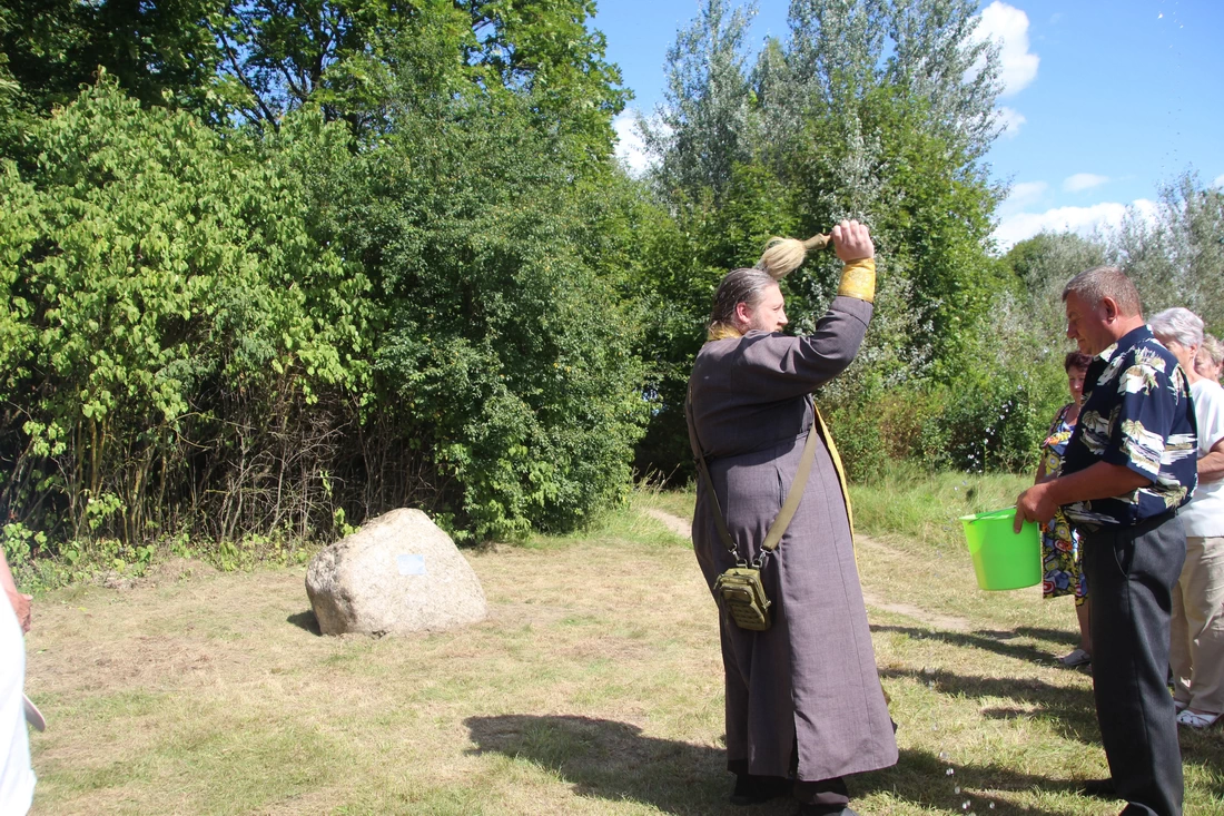 В тот день священник отец Виталий освятил камень и присутствующих, окропив их святой водой и прочитав молитву о добром начинании.
