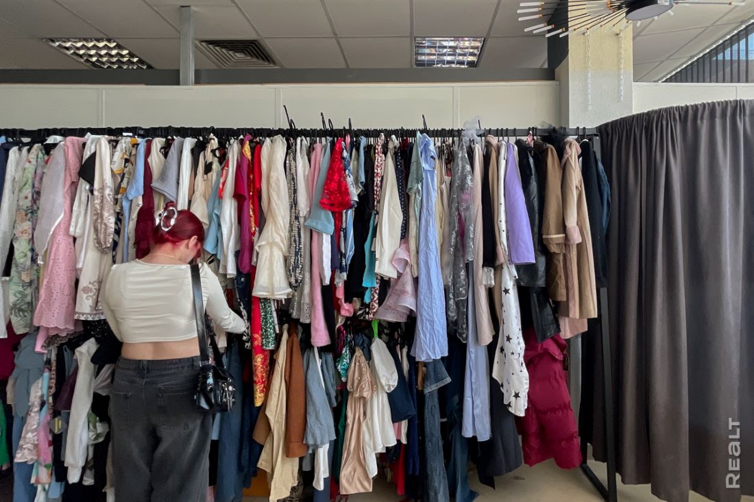 Та же ситуация и с одеждой — но это уже в соседнем павильоне. В честь открытия вся верхняя одежда продавалась по 15 рублей, а остальная — по 10. Судя по информации в инстаграме магазина, такие скидочные дни повторяются и дальше.