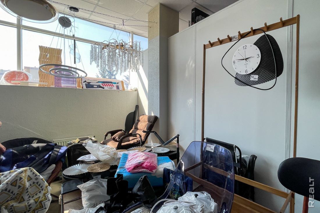 Здесь же, во втором павильоне, можно найти барный стул за 200 рублей, компьютерное кресло за 450 рублей, кресло интерьерное за 350 рублей, а складной диван — за 250. Еще есть люстры — от 150 до 250 рублей. Барный стол можно купить за 300 рублей. Правда, товары в основном единичные.