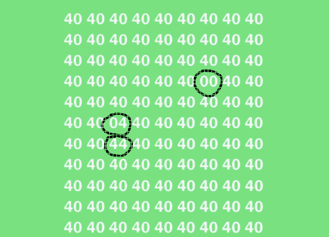 Среди чисел 40 спрятались такие комбинации цифр: 00, 04, 44. Вы же нашли их за 15 секунд?