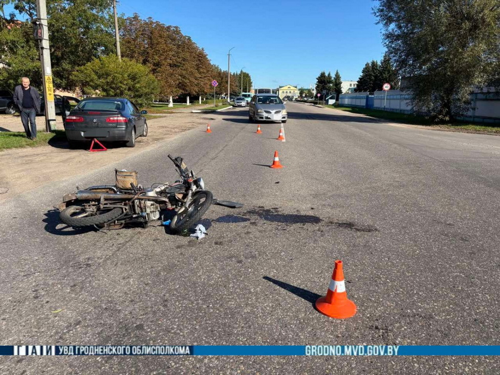 На перекрёстке в Слониме мопедист врезался и автомобиль «Renault»