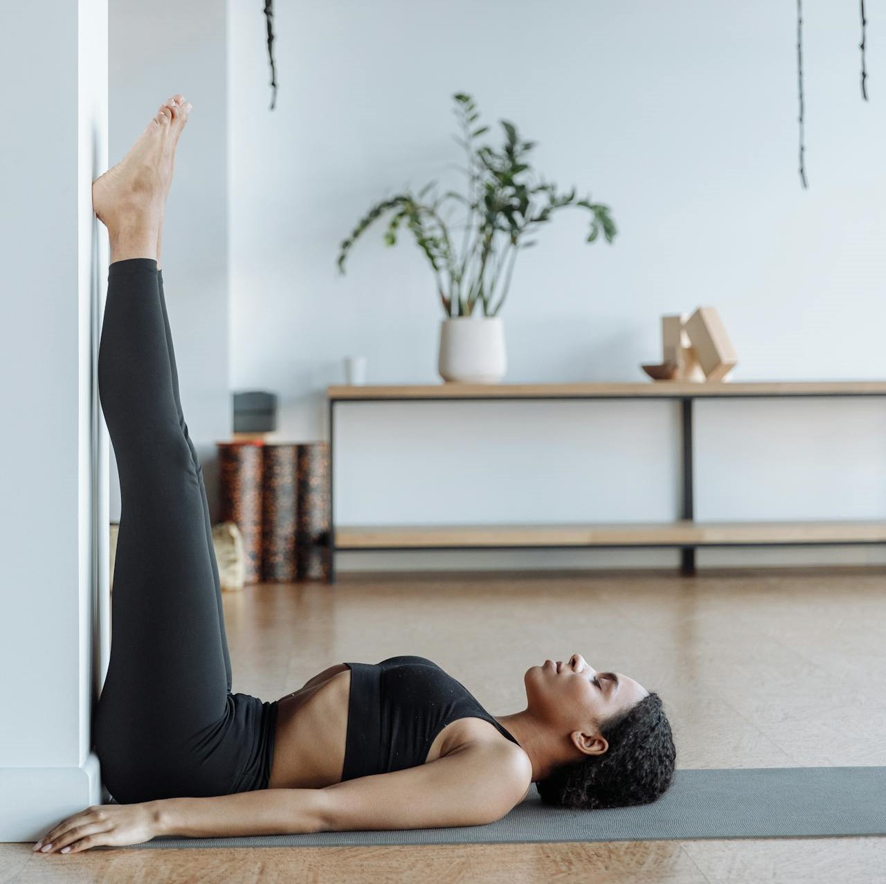 Это упражнение родом из йоги, известное как «ноги у стены». Всё, что вам понадобится — свободная минутка и любая вертикальная поверхность. Даже обычный стул подойдёт, если стены поблизости нет.