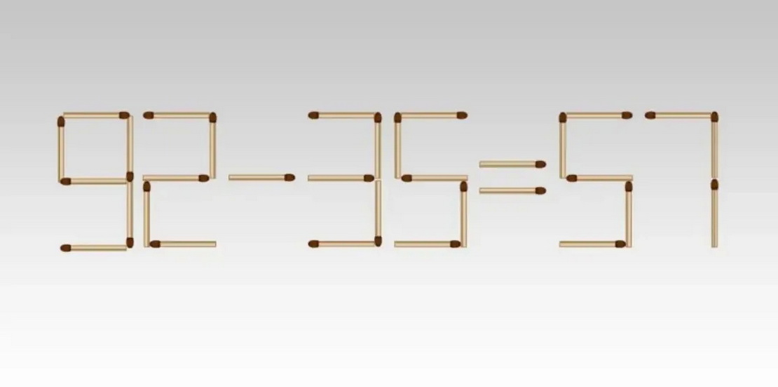 Задание: за 15 секунд сделайте верным равенство 32 + 35 = 57, переставив ровно одну спичку.