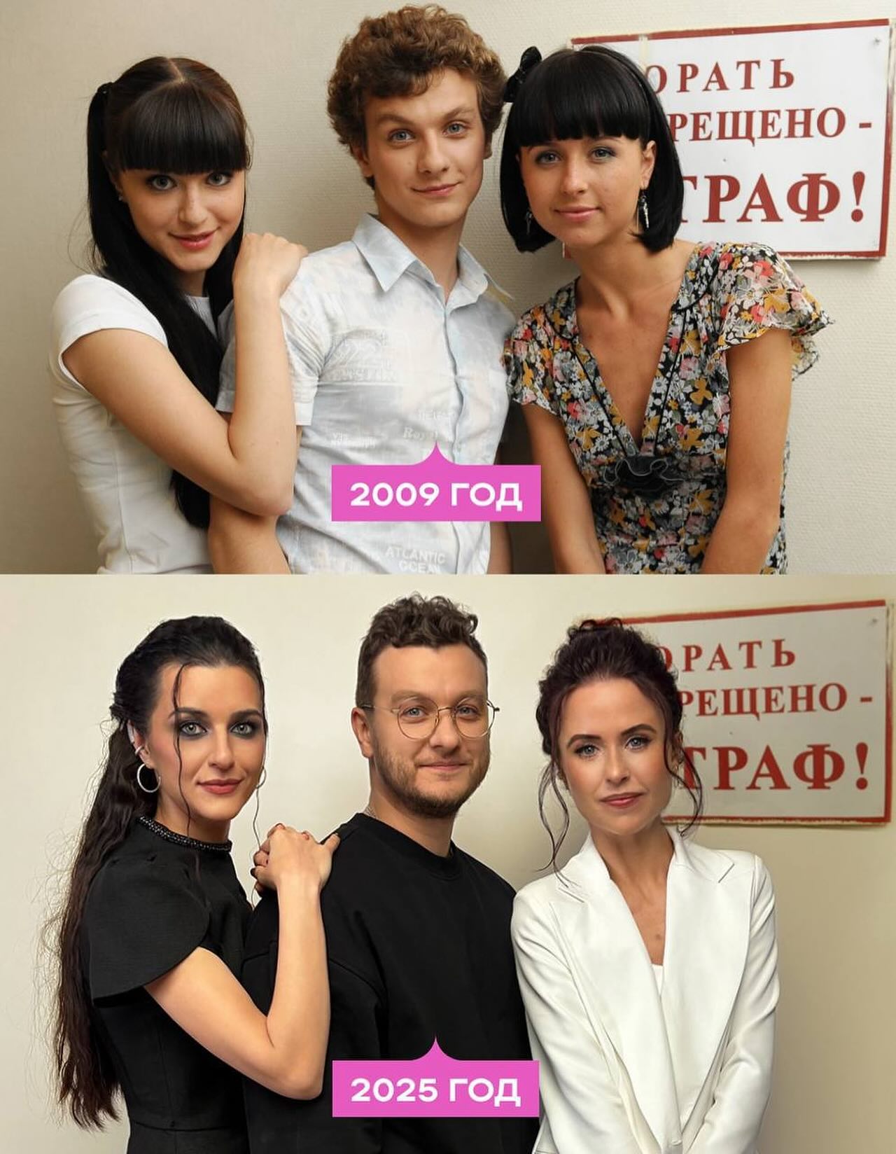 Исполнительницы ролей старших сестер Маши и Даши снова собрались вместе с коллегой Филиппом Бледным, сыгравшим роль Веника, и устроили фотосессию возле легендарной таблички «Орать запрещено — штраф!», которая стала символом дружбы актеров.