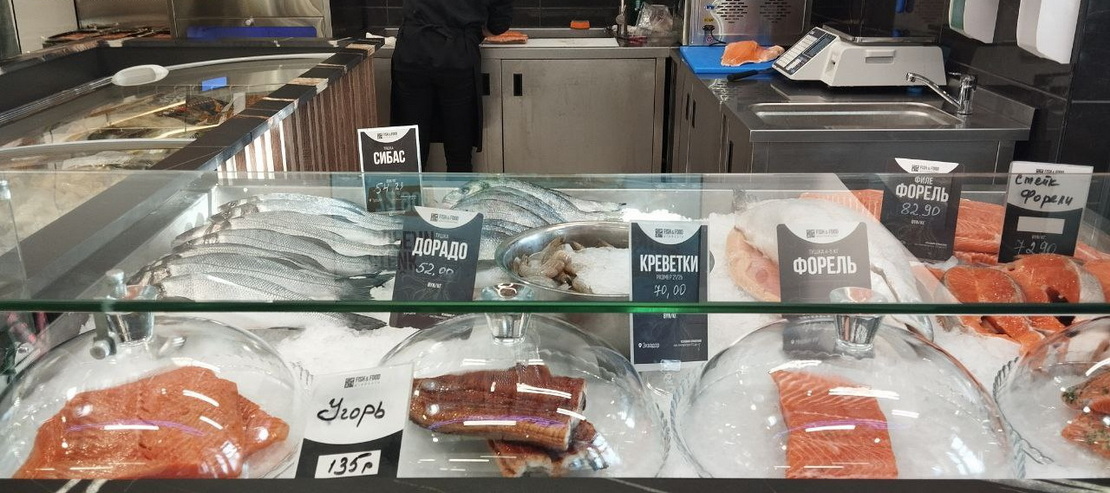 В продаже есть форель, дорадо, сибас, филе, наборы для бульона и готовые рыбные сеты стоимостью до 30 рублей. При желании покупателю рыбу могут разделать на месте.