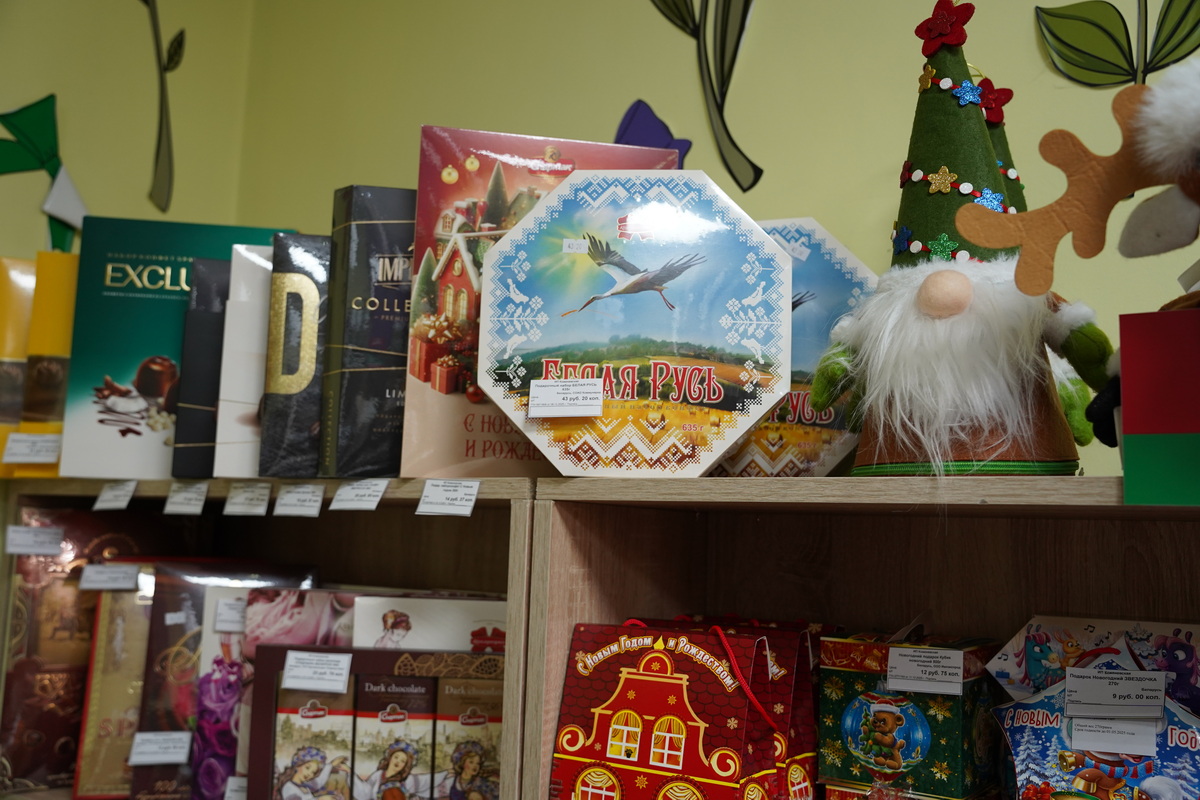 Здесь представлен широкий ассортимент кондитерской продукции: конфеты, зефир, вафли, мармелад, шоколад, чаи и многое другое. В продаже — изделия известных белорусских производителей: фабрики «Спартак», «Коммунарка», «Красный пищевик», «Красный мозырянин», «Витьба», «Слодыч». Также покупателям доступна продукция российских кондитеров, которая пользуется большим спросом.