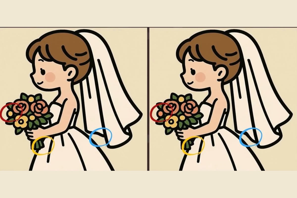 испытание. Внимательно посмотрите на два изображения невесты с цветами.