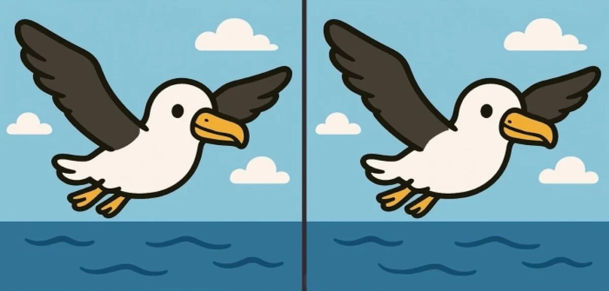 Готовы к проверке? Перед вами два изображения птицы, парящей над океаном. На первый взгляд всё совпадает, но на самом деле здесь спрятаны три отличия.