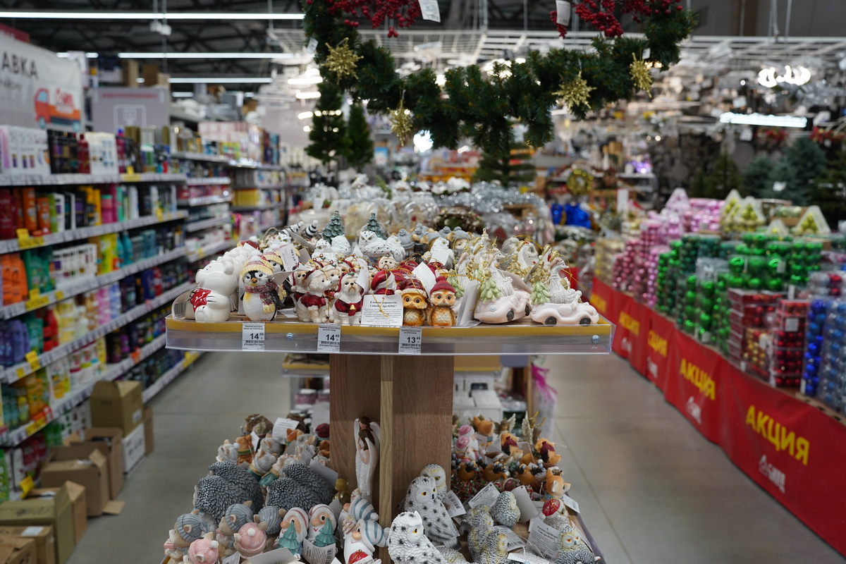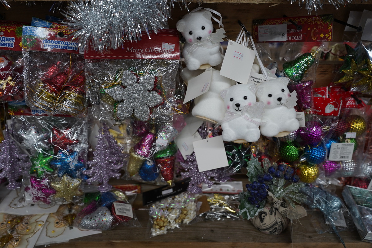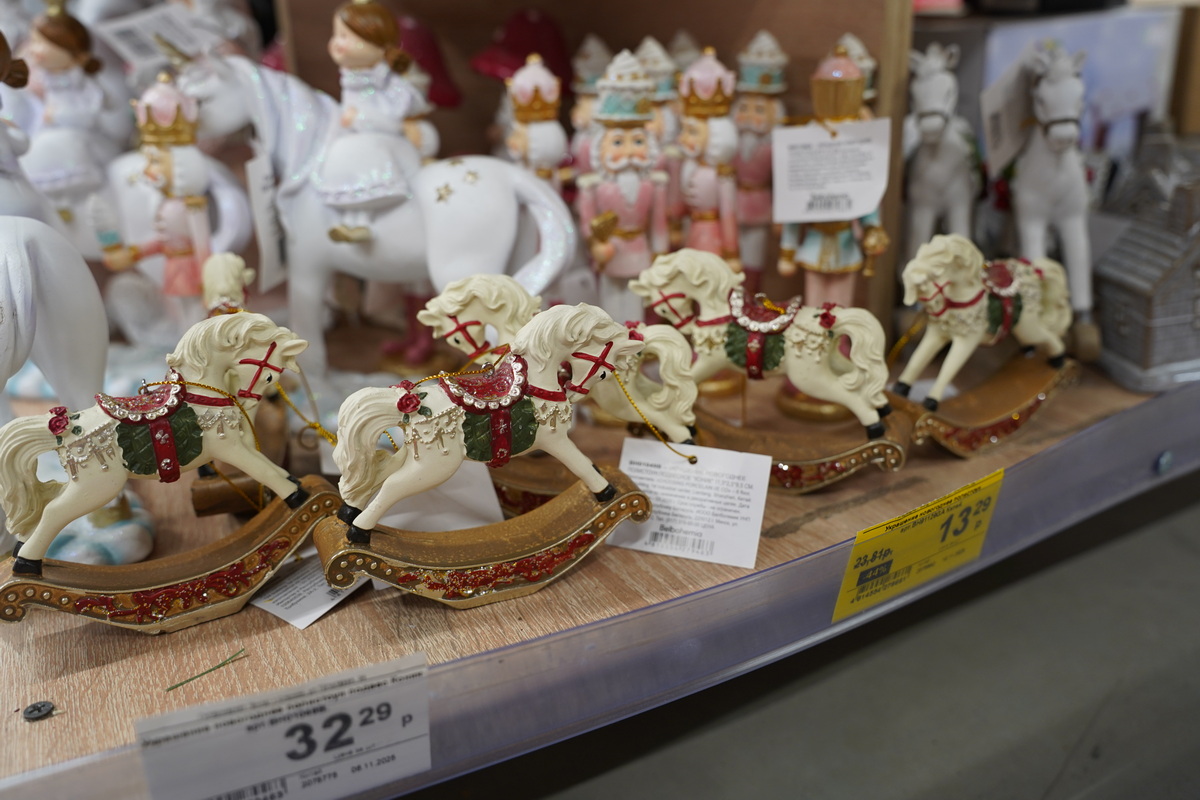 В продаже имеются елочные игрушки, наборы шаров (от 16 рублей и выше), Деды Морозы, фигурки символа года — керамические лошадки по цене от 16 до 23 рублей. Отличный вариант, чтобы украсить дом и создать праздничное настроение.