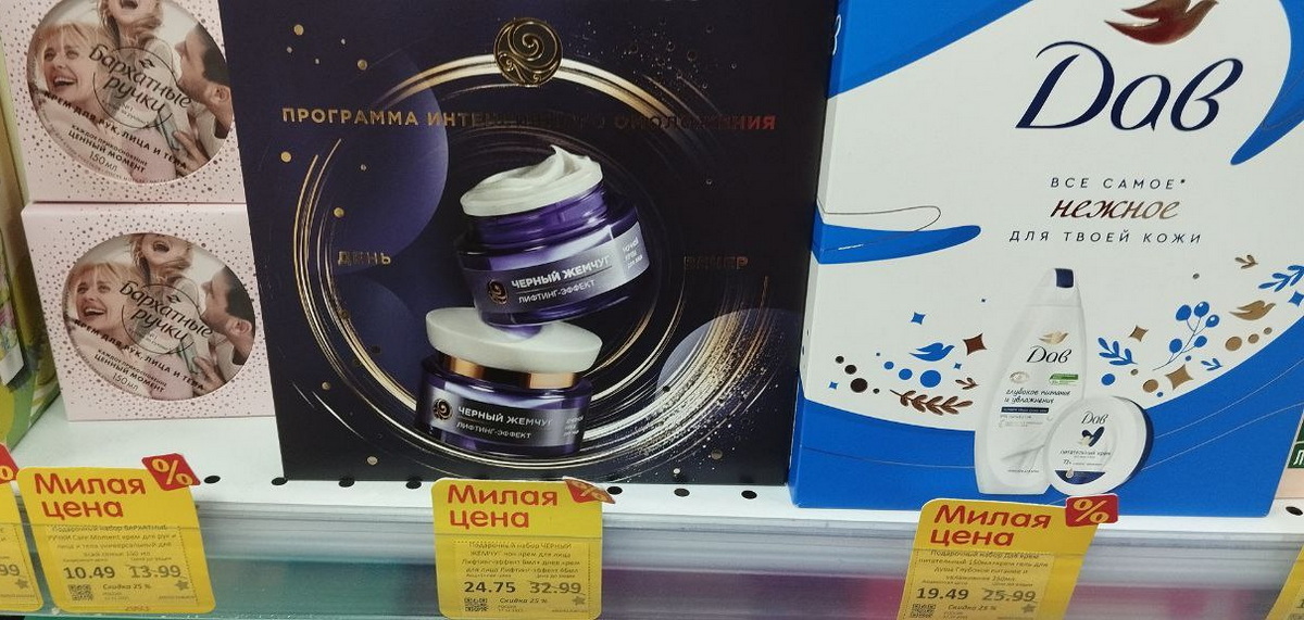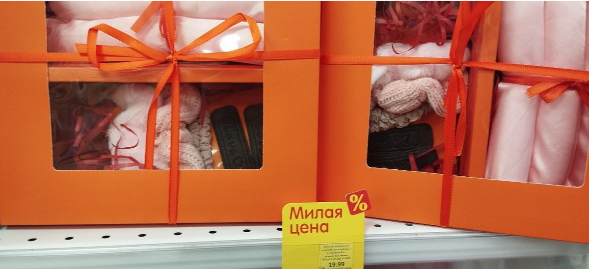 Заглянули и в магазин «Мила». Здесь также есть большой выбор подарочных наборов для женщин, мужчин и детей — многие из них со скидками.