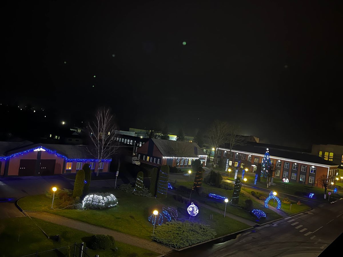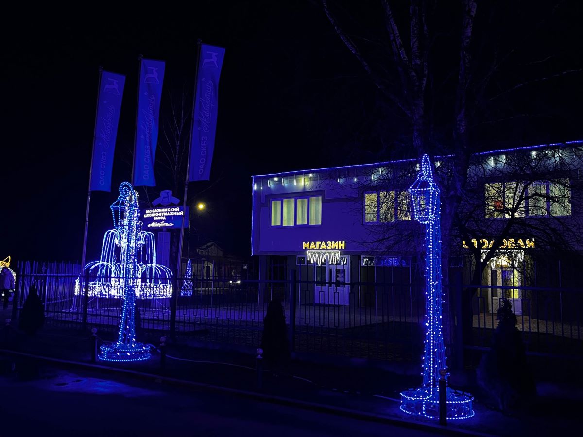 Вся большая территория предприятия перед рождественскими и новогодними праздниками засияла яркими волшебными огоньками и оригинальными украшениями.