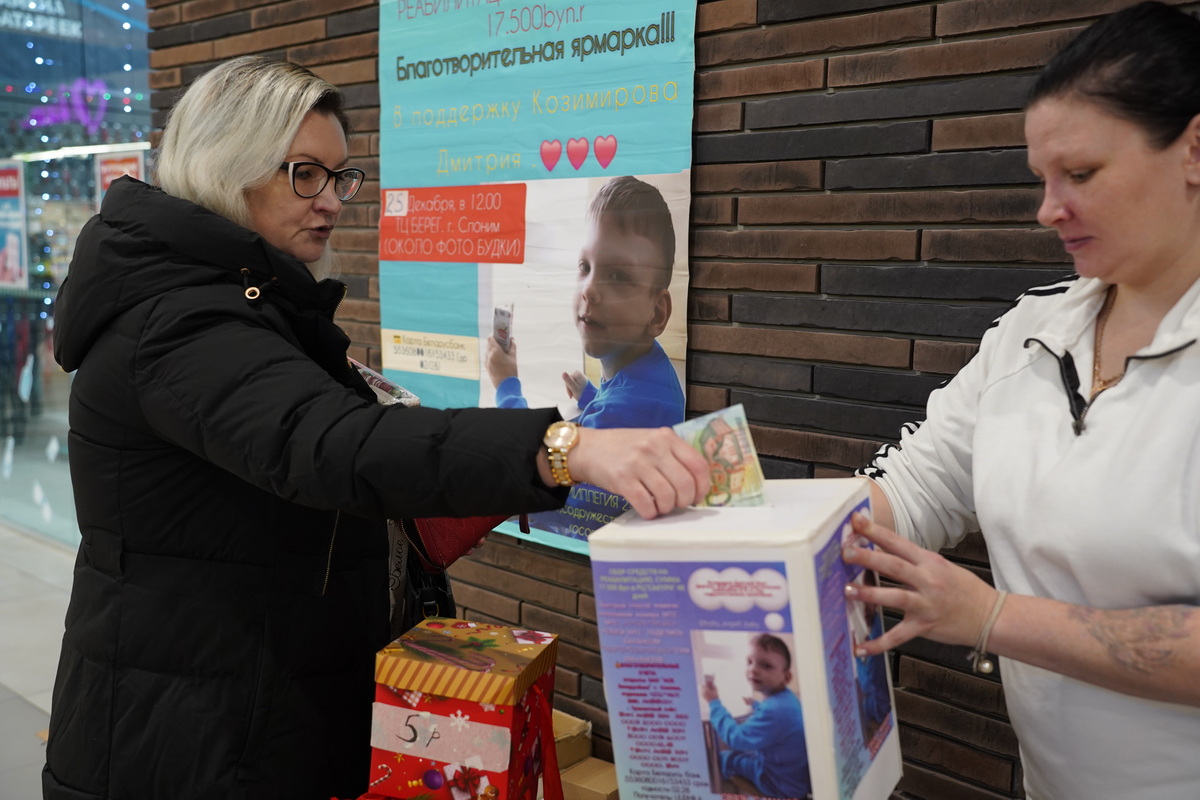 В ТЦ «Берег» в Слониме проходит благотворительная ярмарка в поддержку Дмитрия Козимирова. Средства собирают на оплату курса лечения в реабилитационном центре «Сакура». Необходимая сумма — 17 500 рублей.