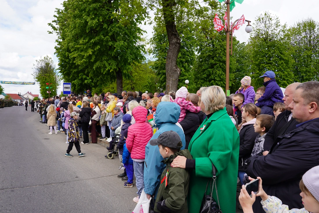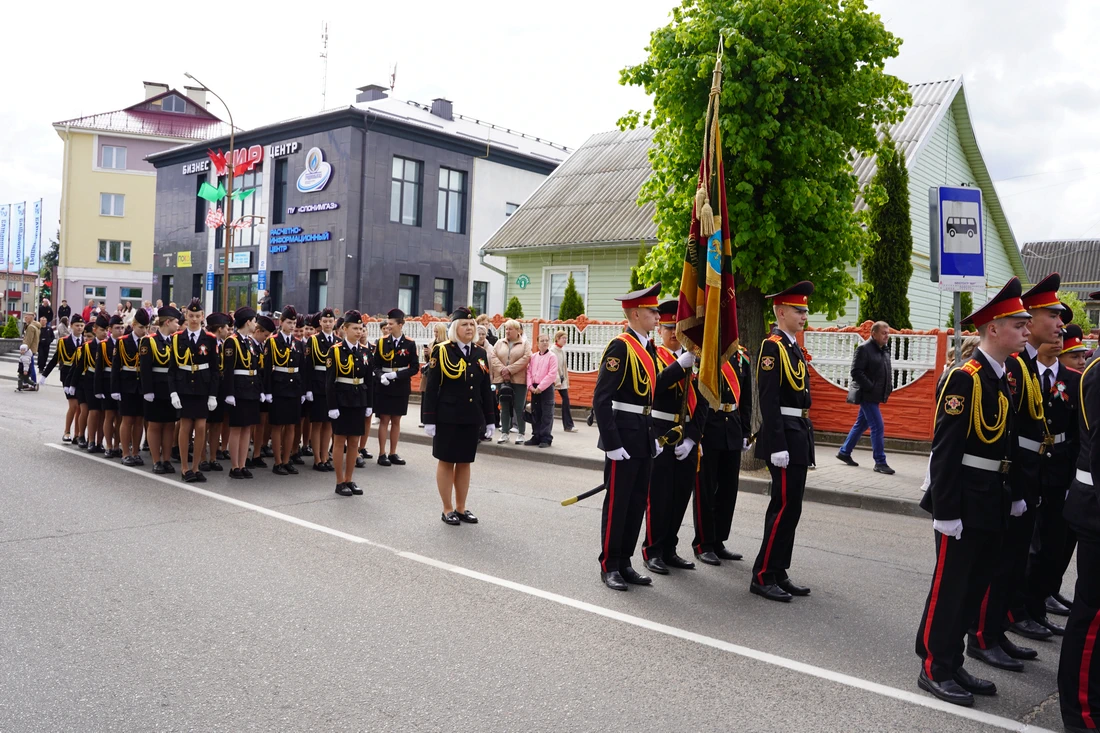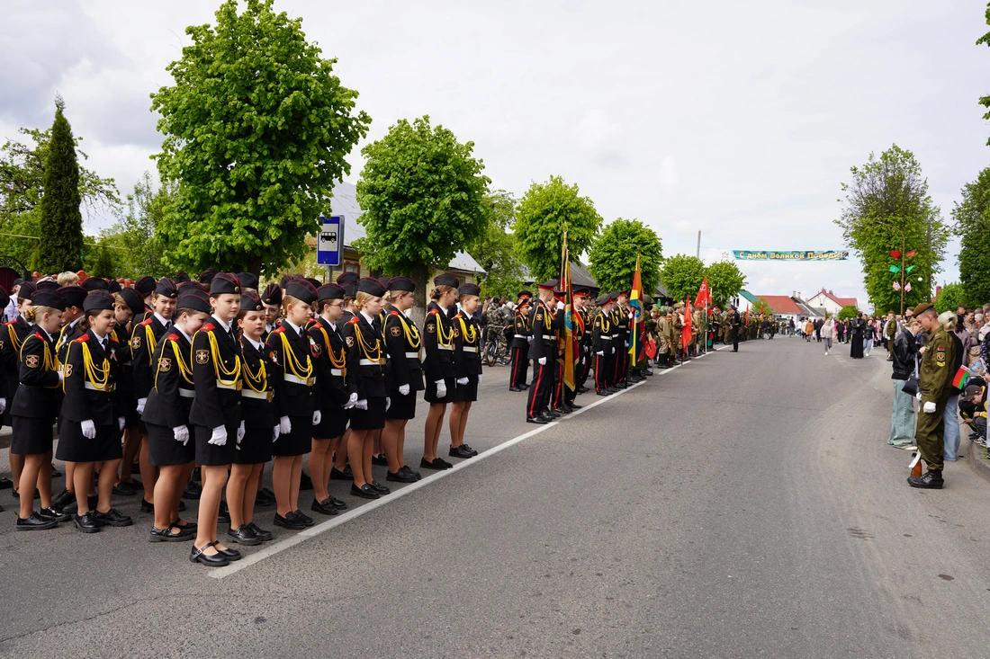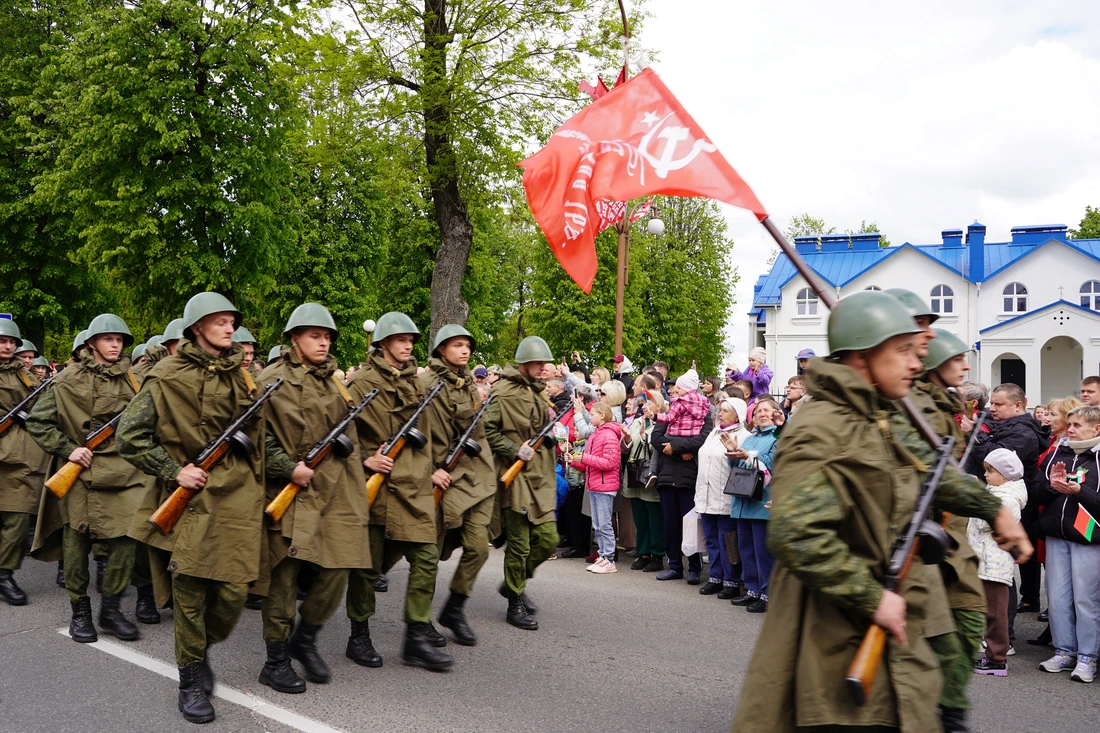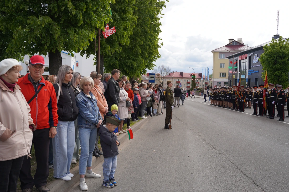По улицам города прошёл торжественный марш колонн «Беларусь помнит», «Парад поколений», военнослужащих, кадетов и реконструкторов в форме Красной Армии. Жители города встречали участников шествия аплодисментами.