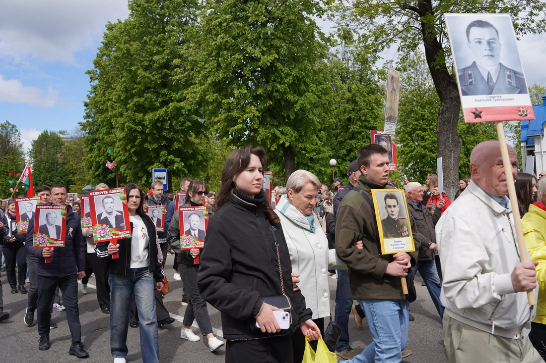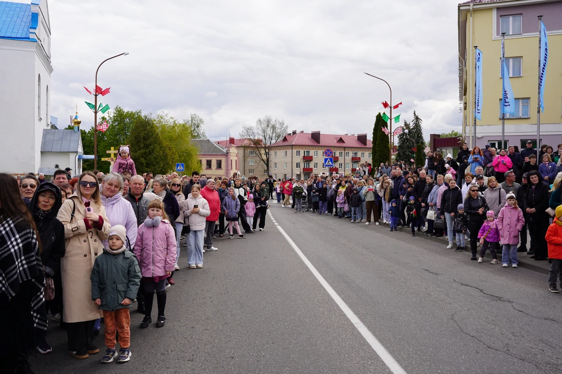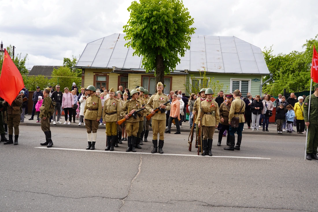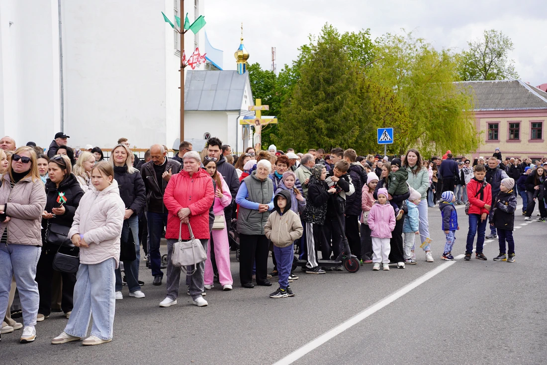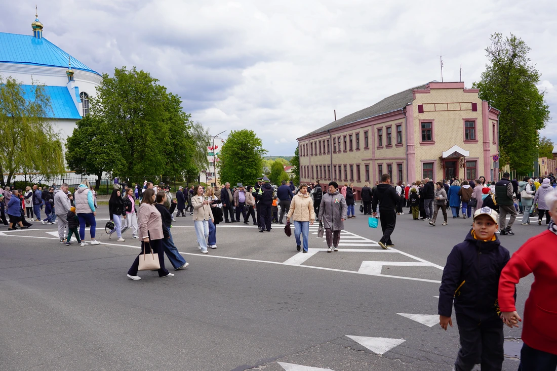 По улицам города прошёл торжественный марш колонн «Беларусь помнит», «Парад поколений», военнослужащих, кадетов и реконструкторов в форме Красной Армии. Жители города встречали участников шествия аплодисментами.