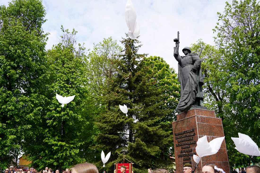 С самого утра в сквере на улице Пушкина состоялся торжественный митинг под девизом «Гордимся памятью героев!». Жители и гости города почтили память павших, возложили цветы к Вечному огню и памятнику воинам-освободителям.