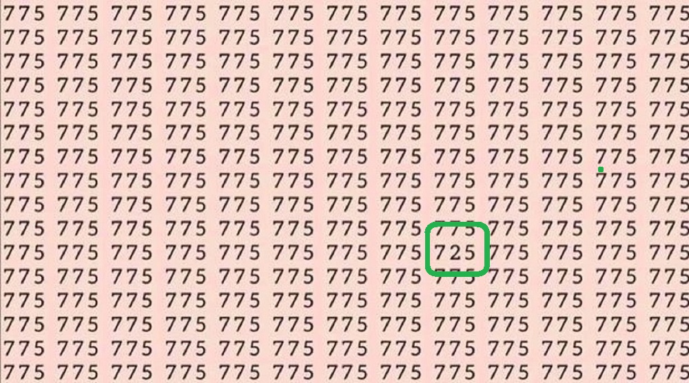 Картинка ниже заполнена числами 775. Но вот загвоздка: среди десятков одинаковых цифр скрывается одно исключение — загадочное число, которое немного отличается от числа 775.