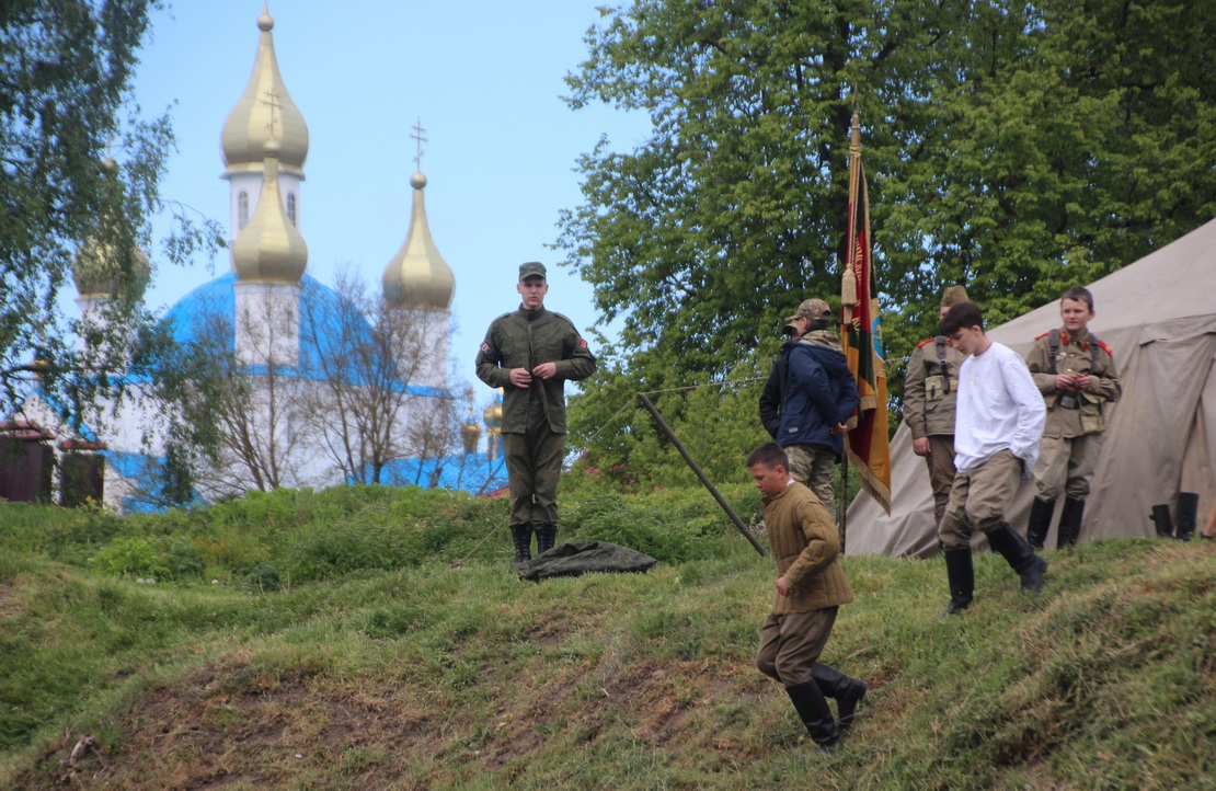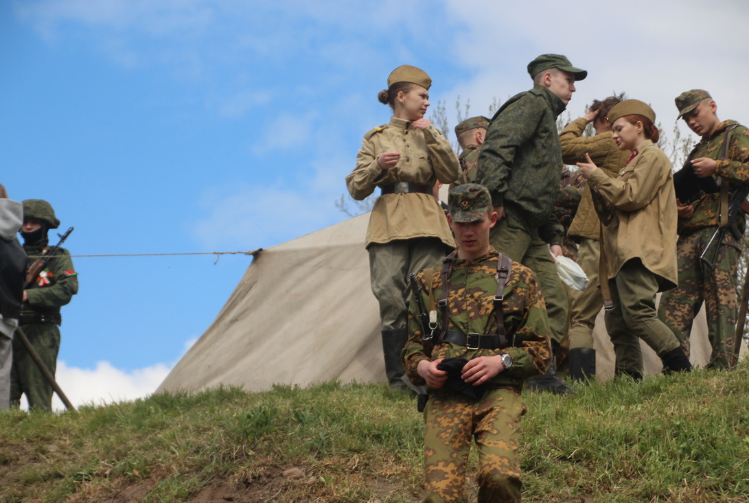 Имитация боевых действий, фронтового быта сопровождалась живым участием актёров в форме Красной армии. Дети с интересом рассматривали технику, взрослые делали фото.