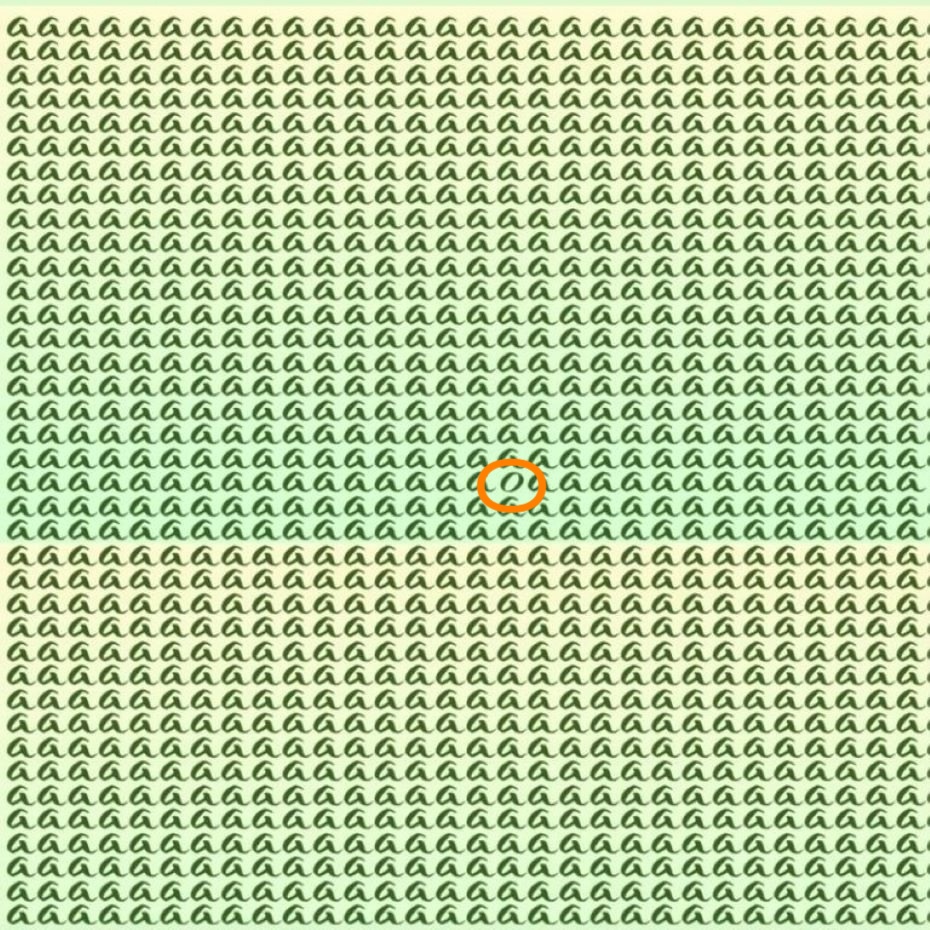 Среди сотен букв «А» буква «О» расположилась почти по центру изображения. Вы же сразу ее начали искать на периферии, так?