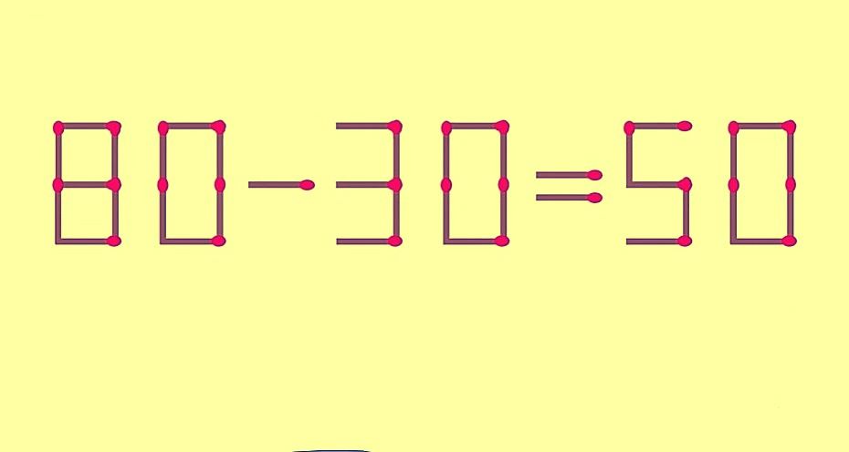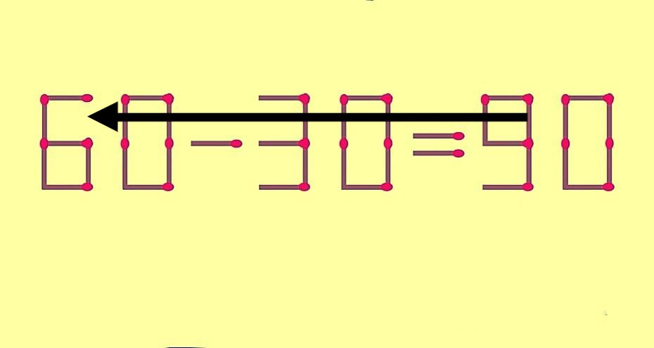 Перед вами неравенство, составленное из обычных спичек. Задача проста: нужно переместить ровно одну спичку так, чтобы неправильное равенство 60–30=90 превратилось в правильное. Всего 20 секунд дано на решение!