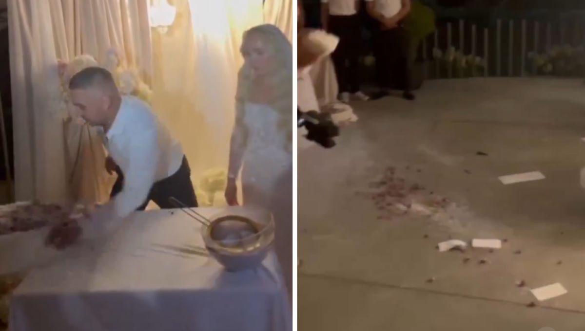 На видео, набравшем тысячи лайков в соцсетях, обычная свадебная сцена: жених и невеста у торта, гости с телефонами наготове. Но момент превращается в скандал — мужчина в шутку тычет палец в крем и слизывает его. Невеста просит не делать этого. Вместо извинений жених в гневе смахивает торт со стола.