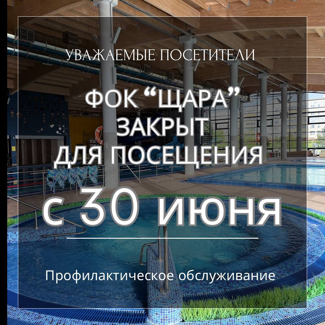 «Уважаемые жители и гости нашего города! С 30 июня ФОК «Щара» будет закрыт для посещение в связи с ежегодными профилактическими работами на тепловых сетях. Приносим свои извинения за доставленные неудобства», — написала администрация комплекса в соцсетях.