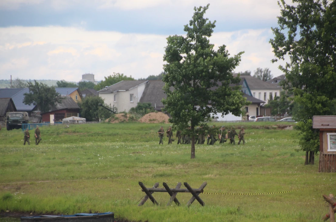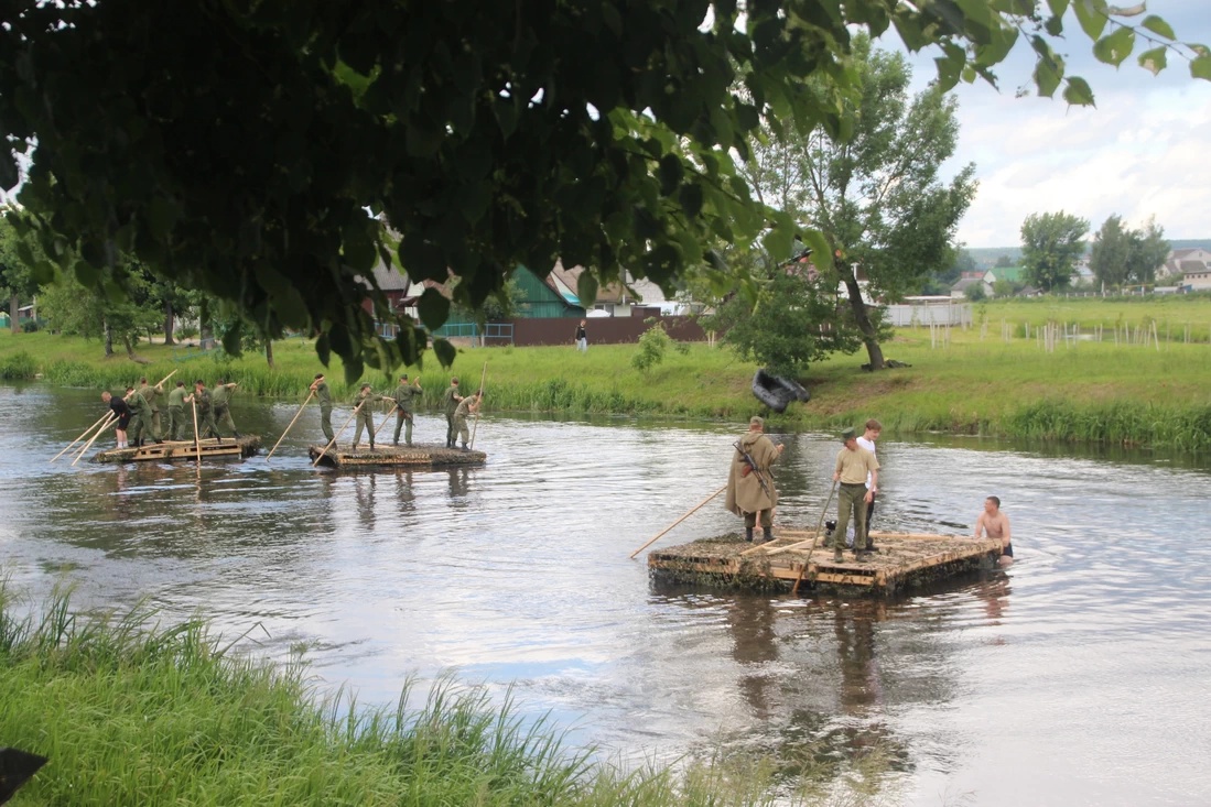 Одним из ключевых эпизодов будущей реконструкции станет форсирование Щары. Сегодня этот момент уже отрабатывался: военнослужащие на плотах переправлялись через реку. Одетые в форму советской армии, с оружием, они управляли самодельными плотами, что создаёт впечатляющую аутентичную картину событий лета 1944 года. После переправы участники репетировали захват позиций, в том числе с рукопашными схватками на берегу.