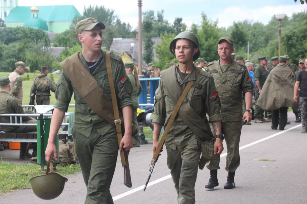военнослужащие 11-й отдельной механизированной бригады, курсанты и кадеты, члены военно-исторических клубов, представители предприятий и организаций Слонима.