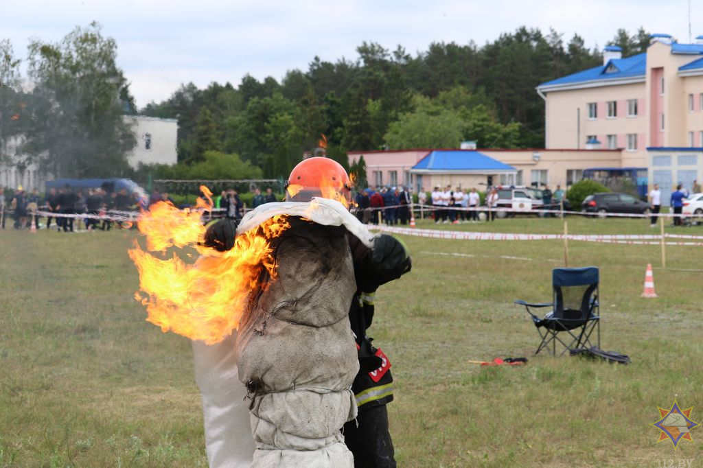 Пожарные команды демонстрировали свои навыки в преодолении 100-метровой полосы с препятствиями, пожарной эстафете и боевом развертывании от мотопомпы.