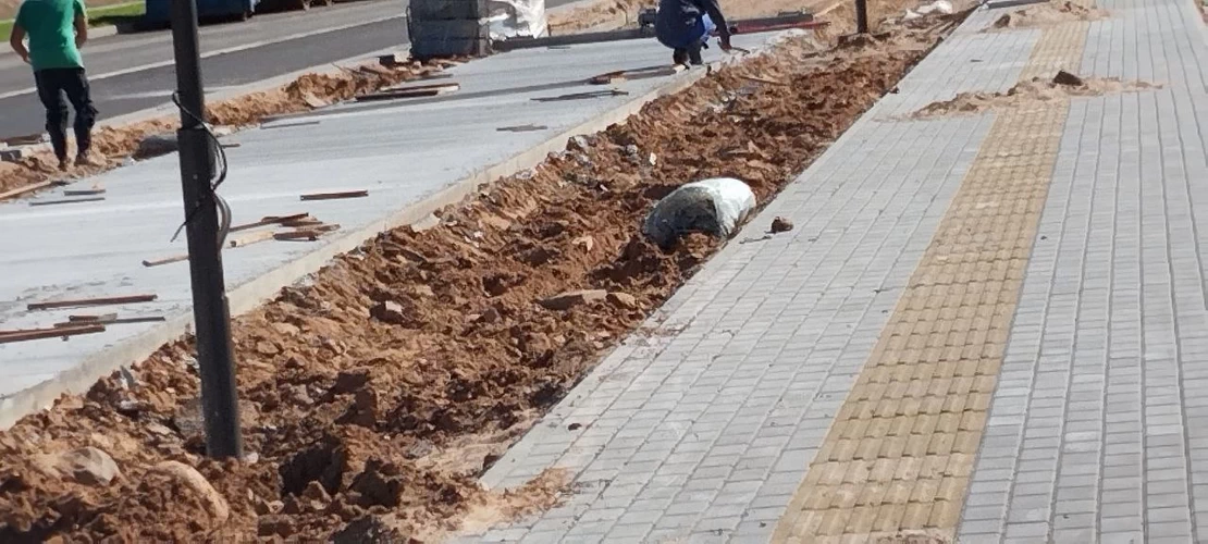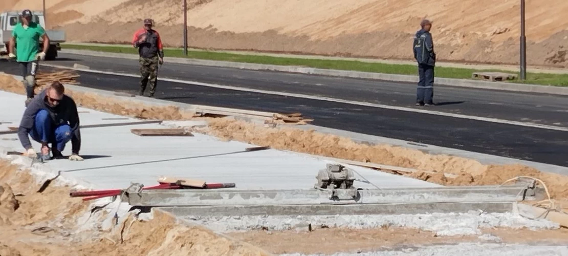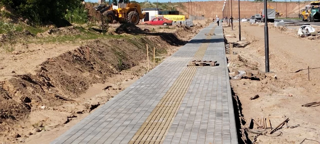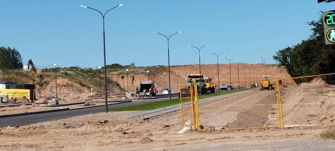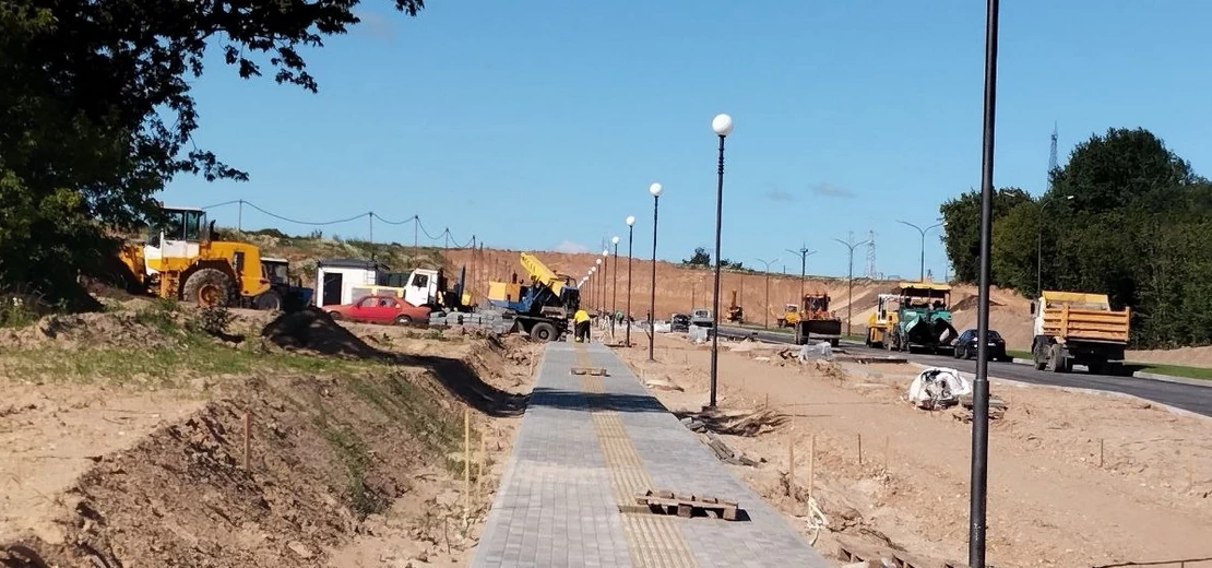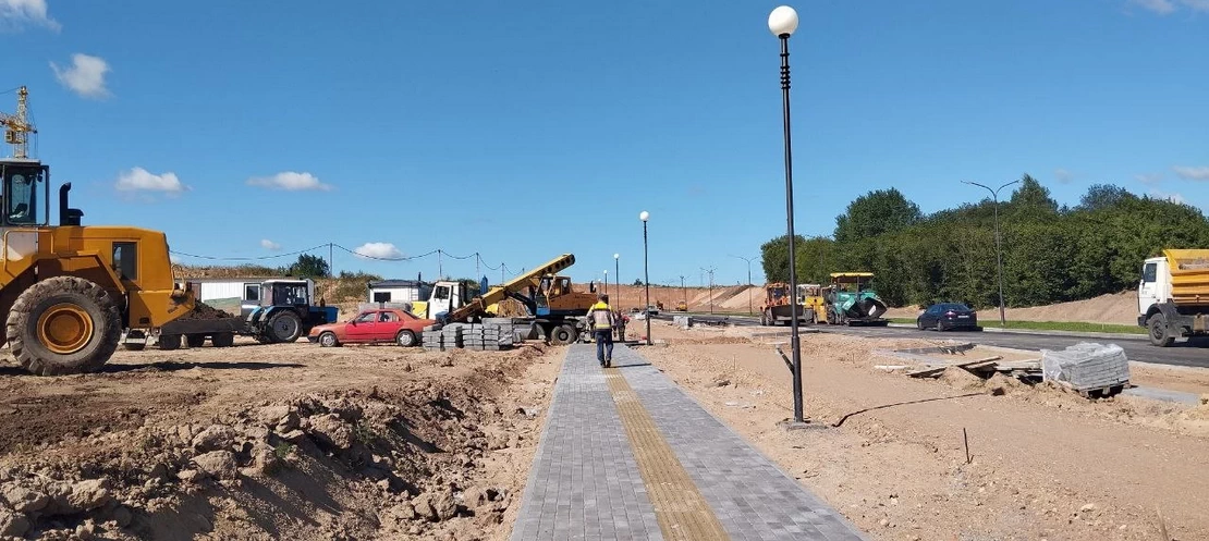 На месте уже уложен асфальт, обустроены тротуары с тактильной плиткой для людей с нарушением зрения, установлены опоры уличного освещения. Сейчас рабочие монтируют канализационные люки и подготавливают площадки для будущих остановок общественного транспорта.