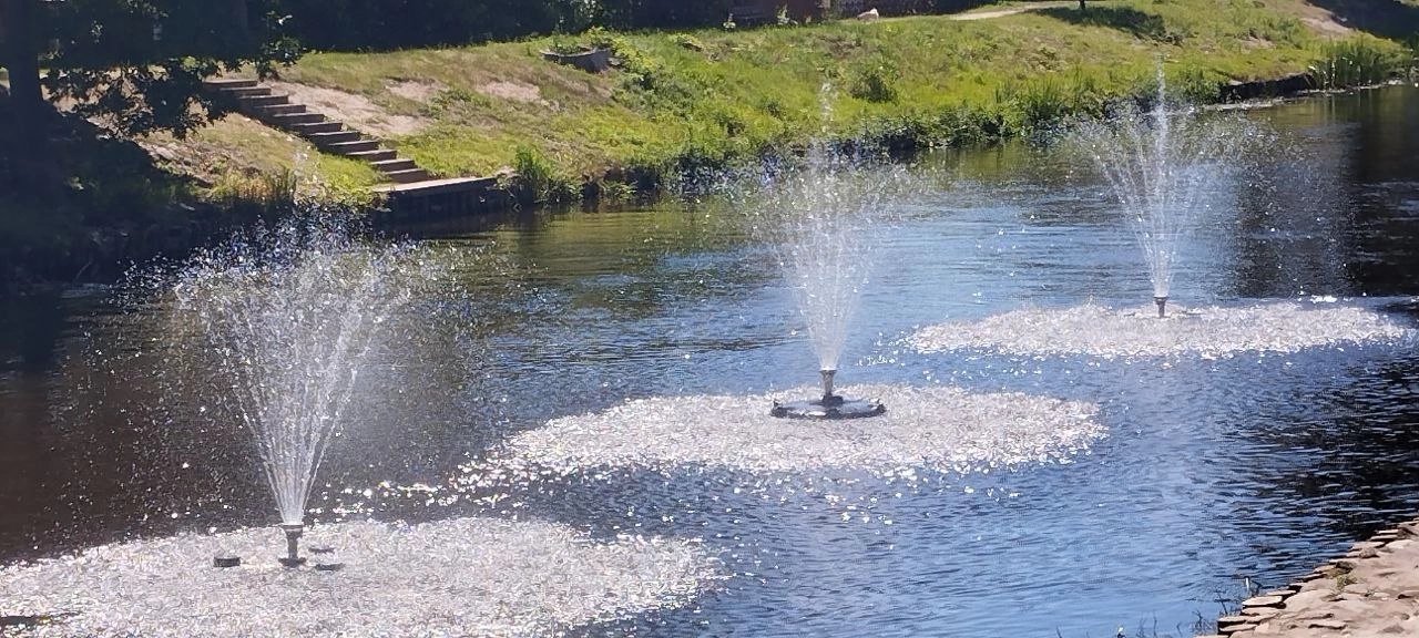 На реке Щаре установили фонтаны, которые стали ярким украшением дня.