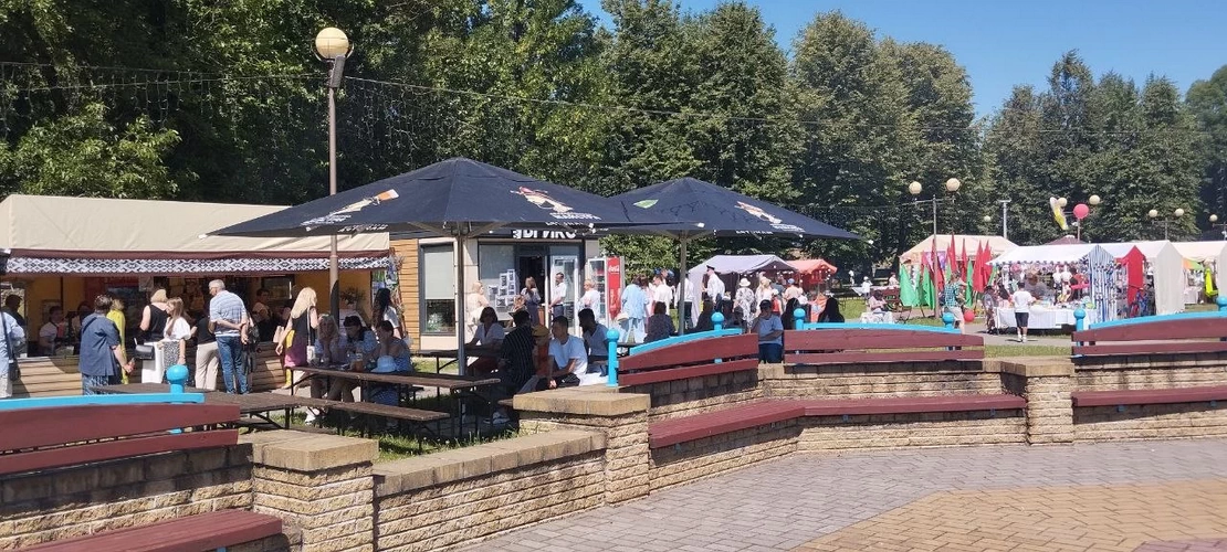 Продолжился праздник в городском парке. Здесь работали торговые ряды, где можно было угоститься шашлыком, блюдами местных производителей и сладостями.