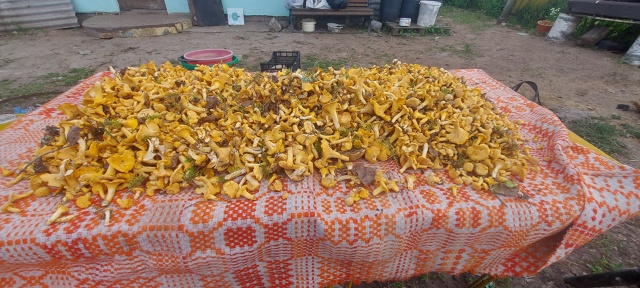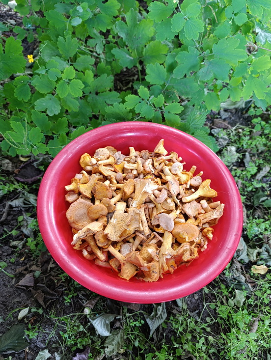 Виталий Шек собрал целую гору лисичек и рассказал, что грибов стало больше, чем пять дней назад.