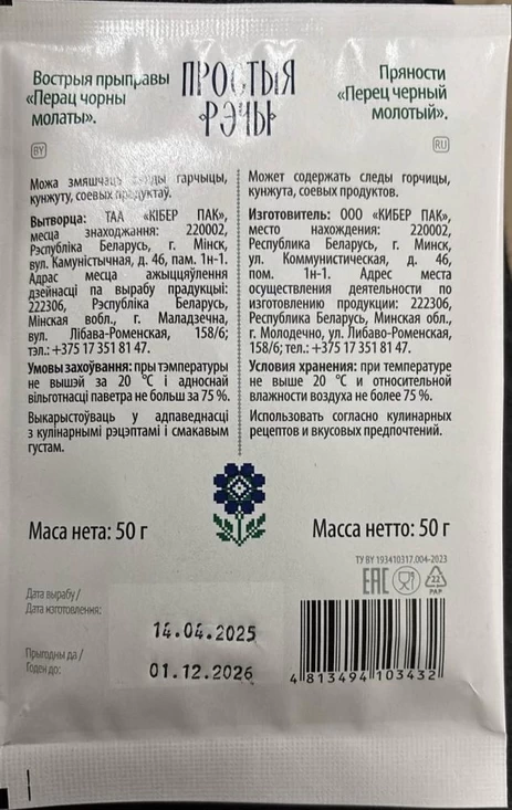Перец чёрный молотый под маркой «Простыя рэчы»