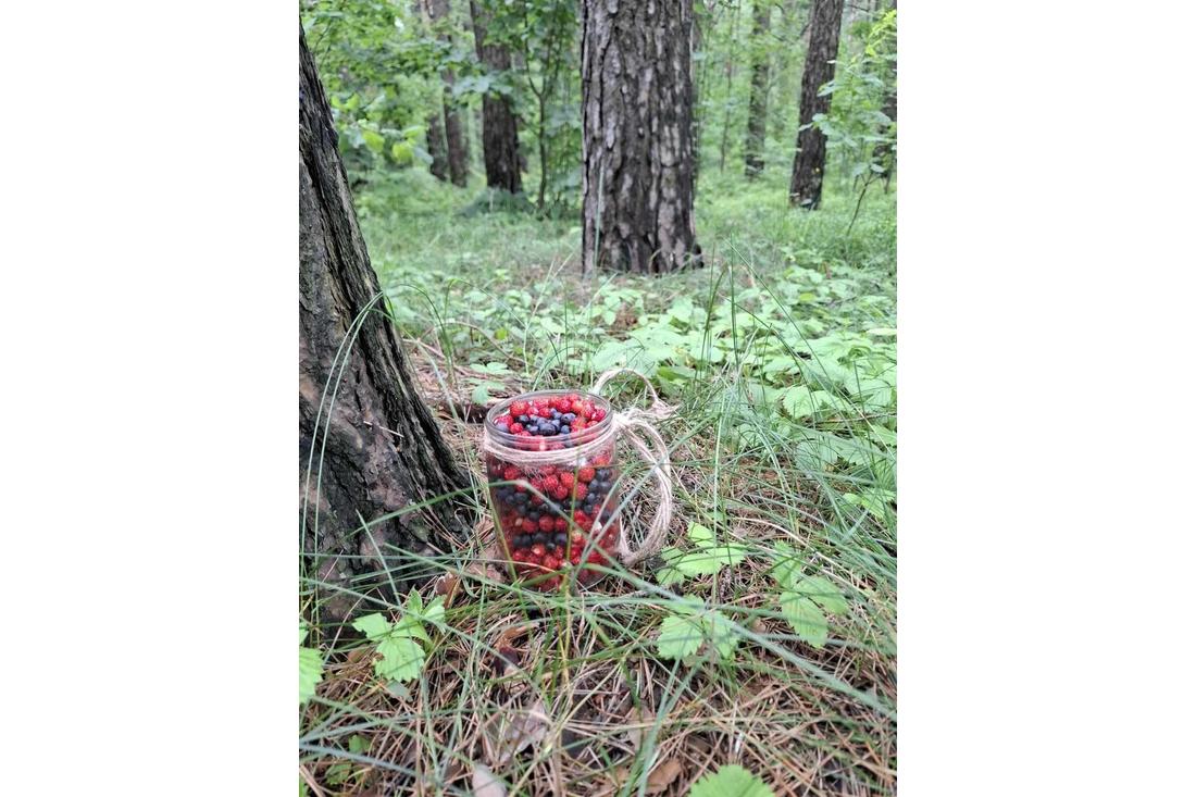 Анастасия Ходачинская насобирала немного вкусняшек — черники и земляники.