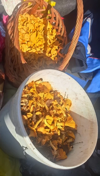 —В день рыбака нагрибалил лисичек! — шутит он, демонстрируя полные корзины.
