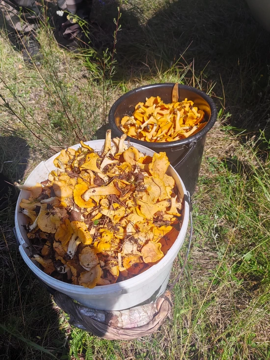 — Много сухих лисичек. Собирать можно хоть весь день, их полно! Но нам хватило на семью — не упирались.