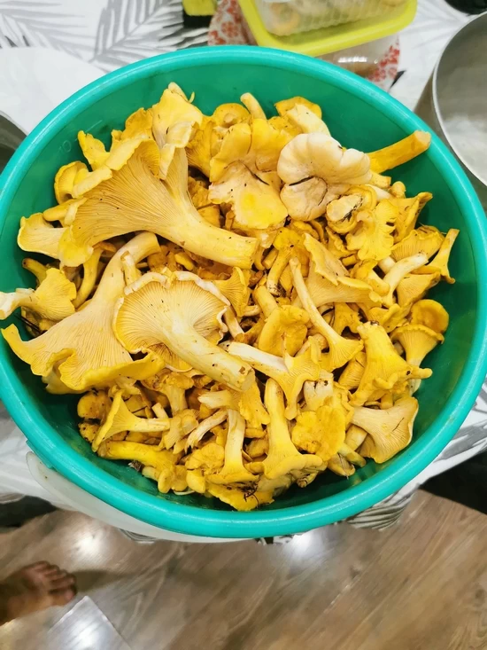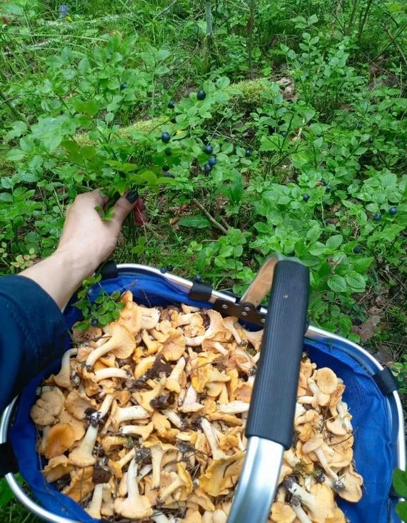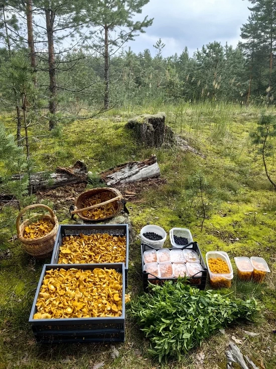 — Съездила на неделю в Тверскую и Новгородскую область. В Новгородской морошка уже отошла, зато черники и голубики — море! А в Тверской собрала 100 литров лисичек — теперь вот перерабатываю.