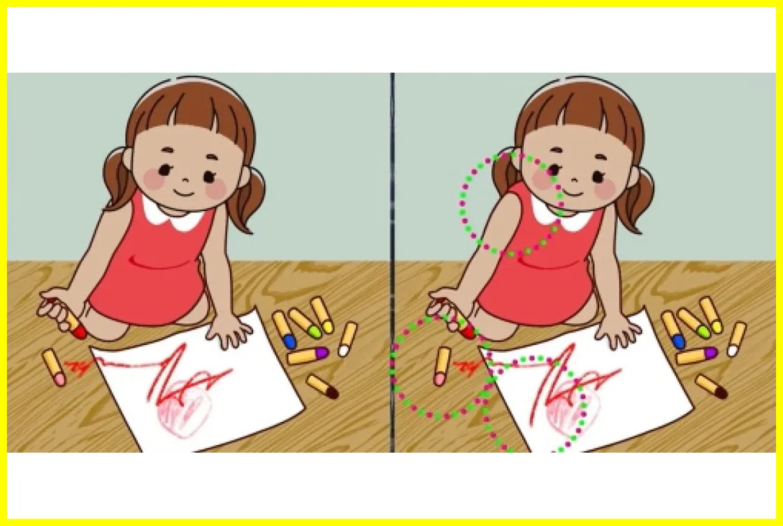 Найдите 3 отличия на картинке с девочкой-художницей за 49 секунд.