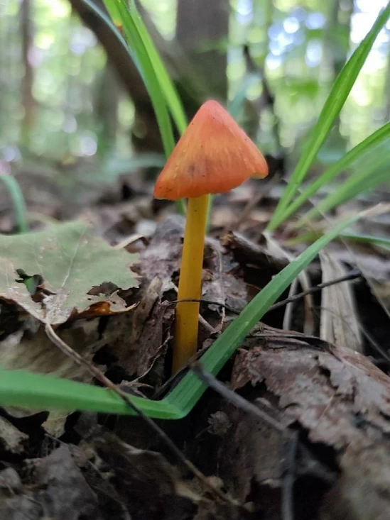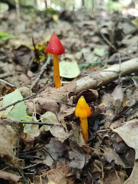 Из последней лесной вылазки пользователи группы также показали гигроцибу коническую (Hygrocybe conica) — яркий, но ядовитый гриб.