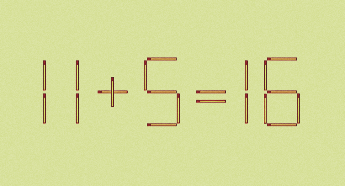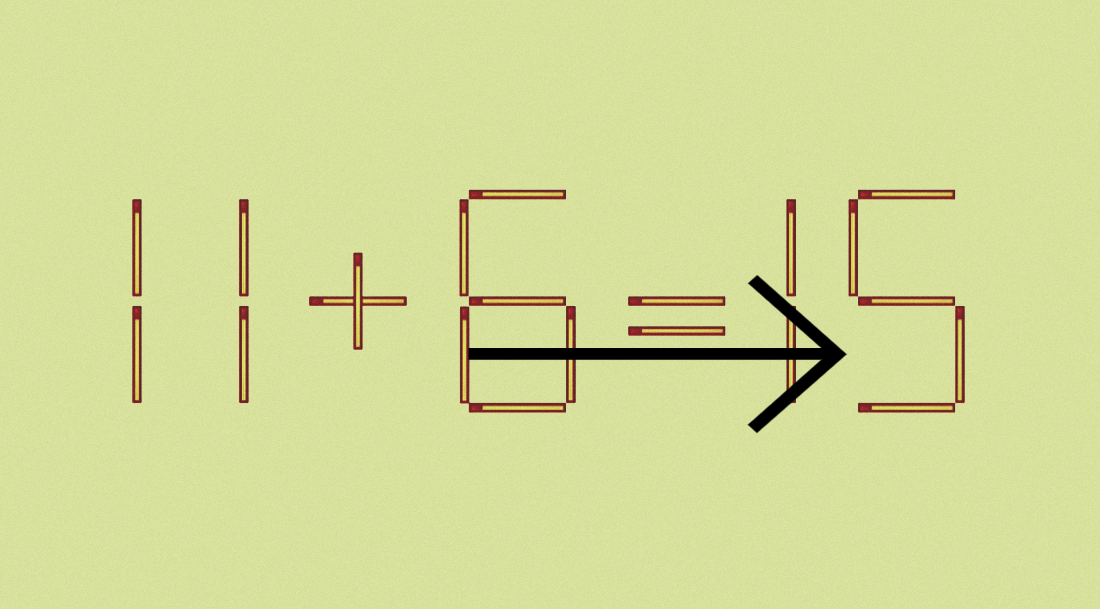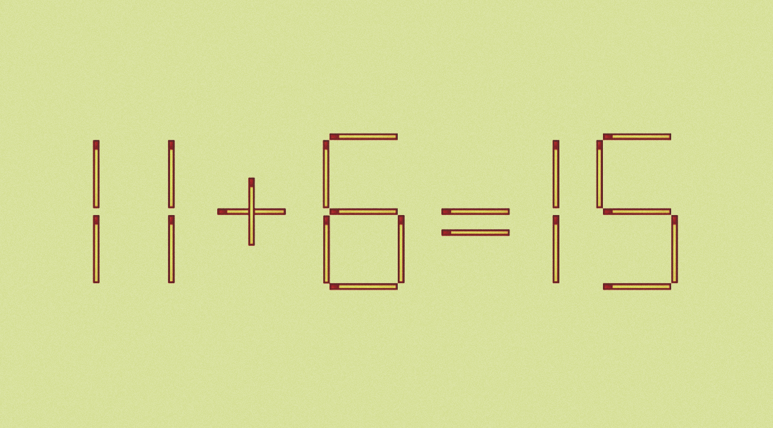 Только гений головоломок решит это за 12 секунд: переставьте 1 спичку в 11+6=15