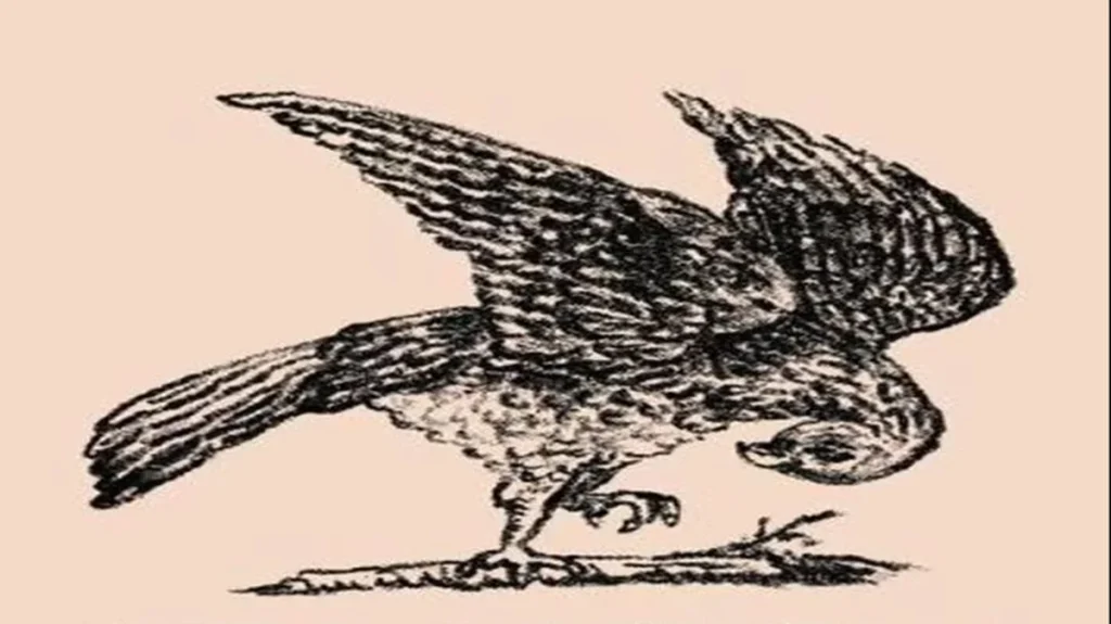 Перед вами черно-белое изображение птицы с раскрытыми крыльями. Среди хитроумно расположенных деталей прячется маленький кролик. Задача простая: найти его за 20 секунд.