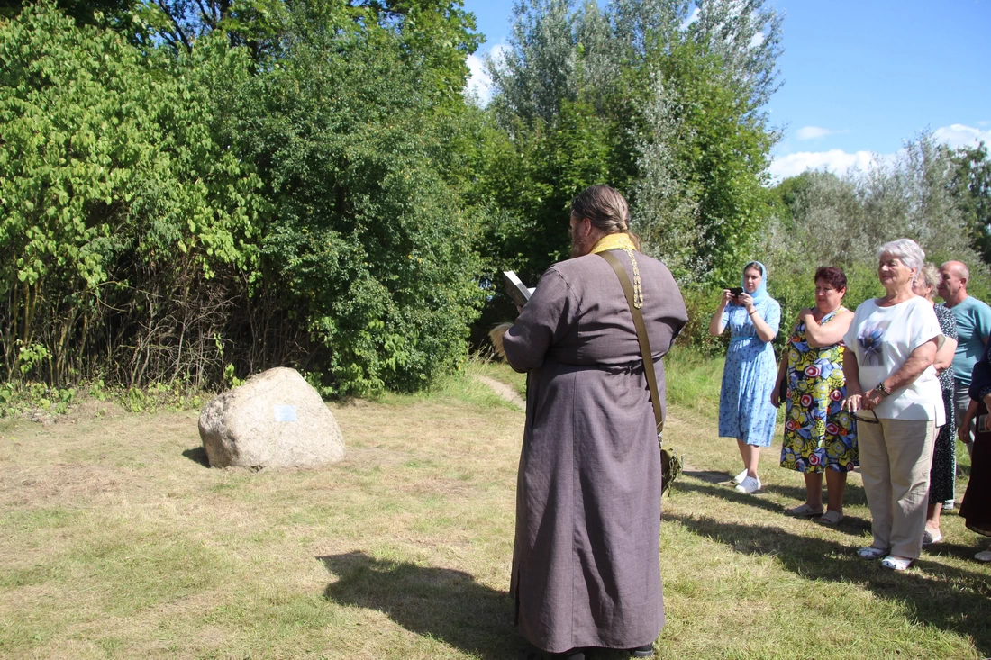В тот день священник отец Виталий освятил камень и присутствующих, окропив их святой водой и прочитав молитву о добром начинании.