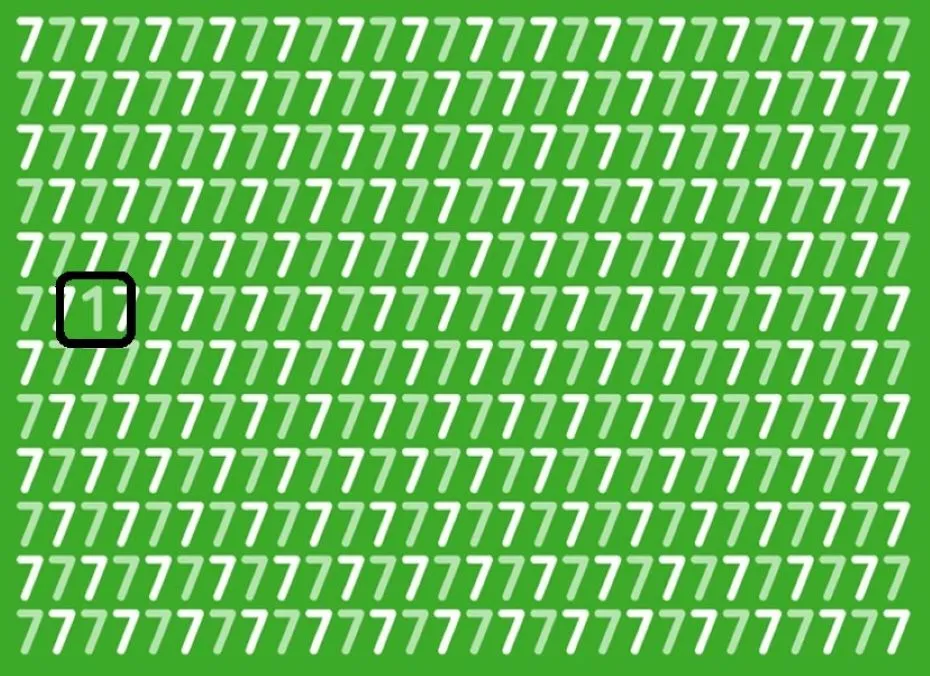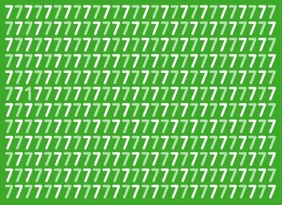 Перед вами изображение, заполненное белыми и салатовыми цифрами «7» на зеленом фоне. Задача — отыскать скрытую единицу менее чем за 10 секунд. Насколько острым окажется ваше зрение?