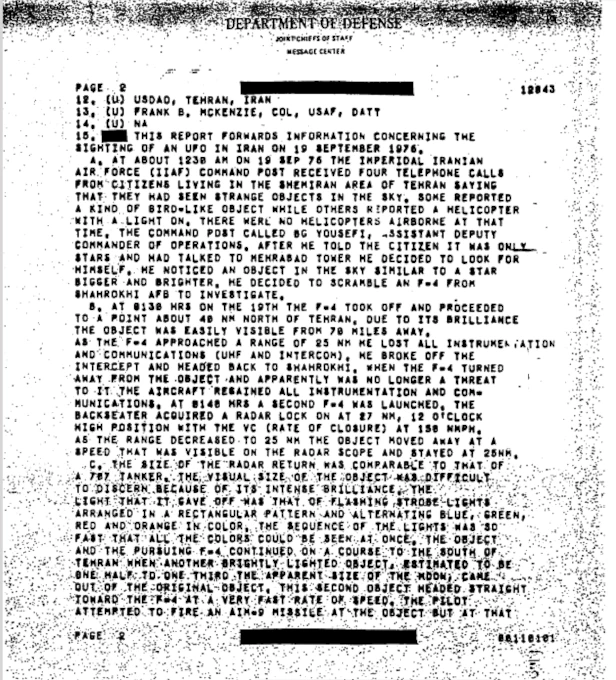 18 сентября 1976 года. Тегеран. Майор Парвиз Джафари — лучший пилот иранских ВВС, тысячи часов налёта, безупречная репутация — поднимается на F-4 Phantom II для перехвата НЛО.