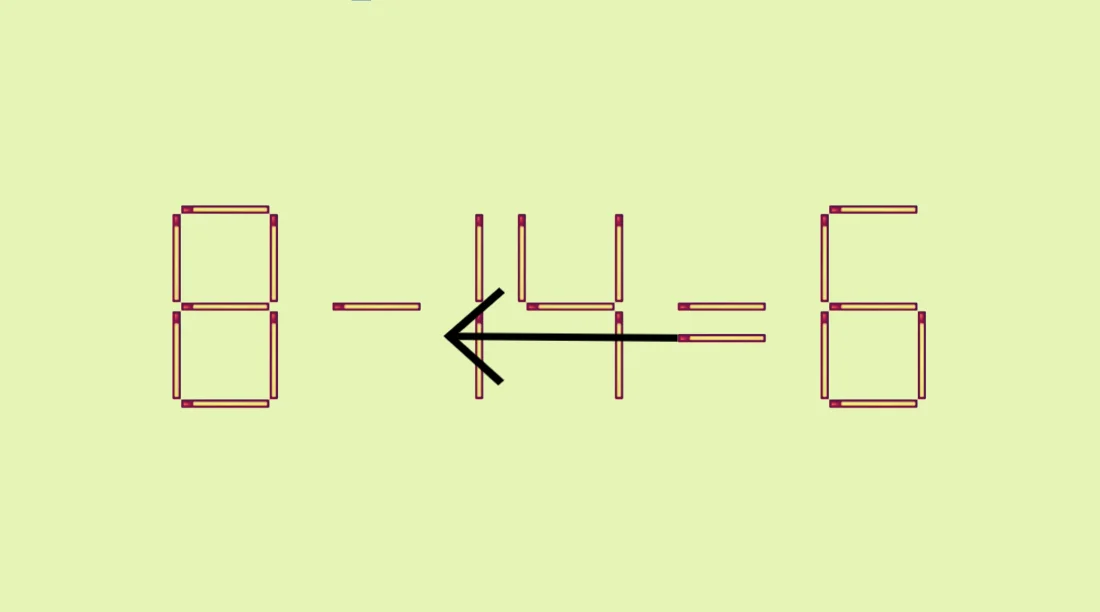 Проверьте свою сообразительность в следующей задаче: 8−14=6. Передвигая ровно одну спичку внутри примера, сделайте равенство правильным.